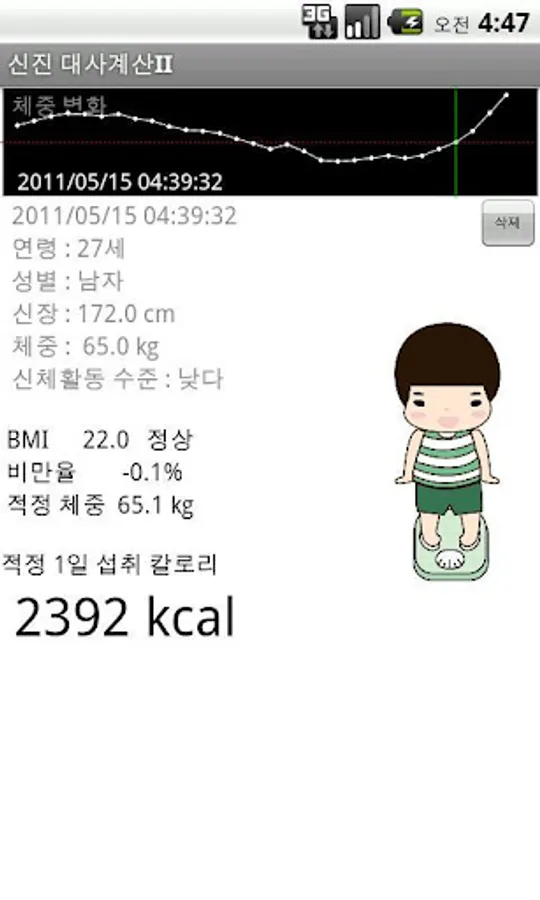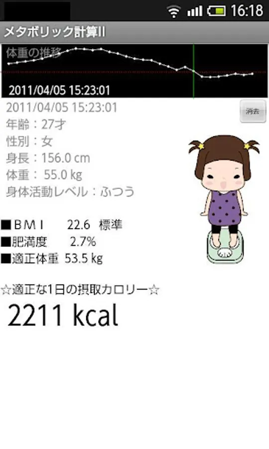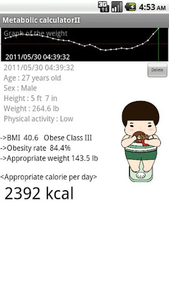 Date, Time, Age, Sex (0:male 1: female), Height, Weight, Activity level (0:Low 1:Standard 2:High), BMI, Obesity rate, Appropriate weight, Appropriate calorie per day, (a), (b)