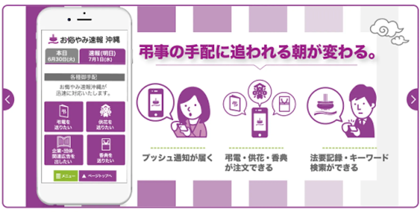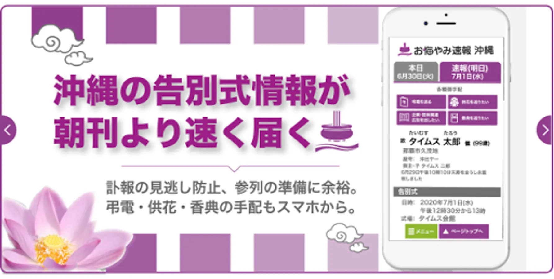 1. Every day, you will receive a push notification the day before the farewell ceremony (published in the Okinawa Times).