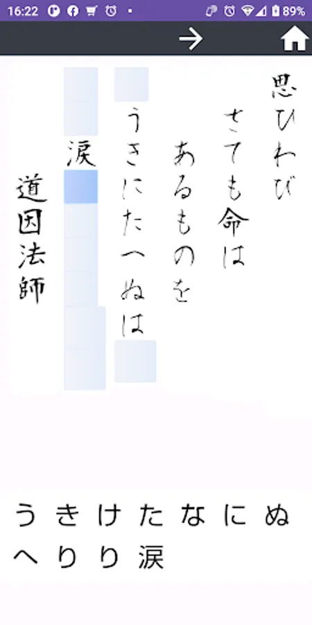 As an appendix, there is a list of Hyakunin Isshu and problems with missing characters.