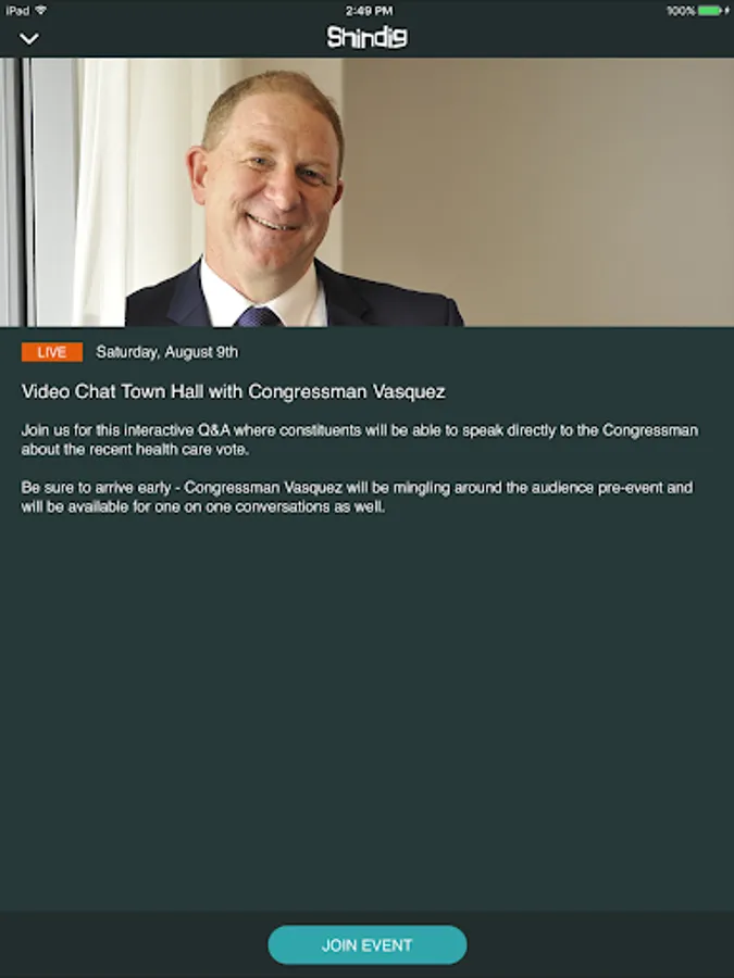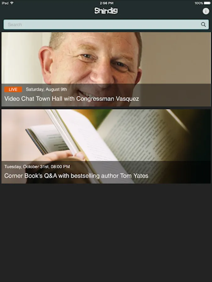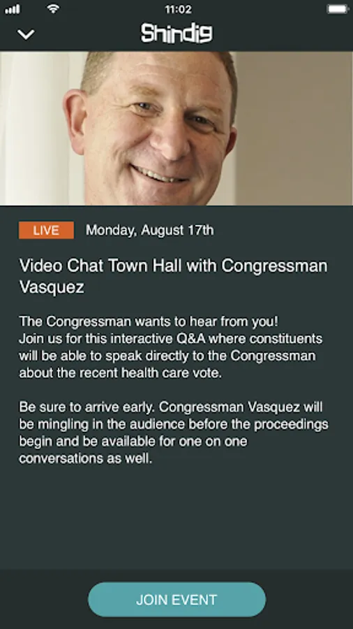 The Shindig app allows you to attend large-scale video chat events from anywhere, anytime. Watch a live talk, presentation, town hall and more. Interact with the host via text and participate in informal polls. Shindig offers the dynamics of in-person events at internet scale.