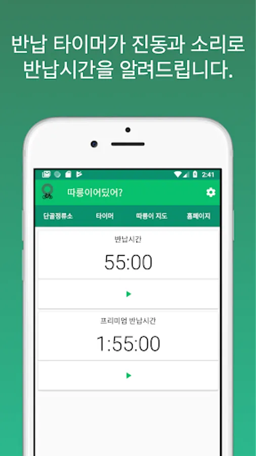 실행 If you run the alarm and put it in your pocket, you will be notified of the return time by vibration and sound after 55 minutes.