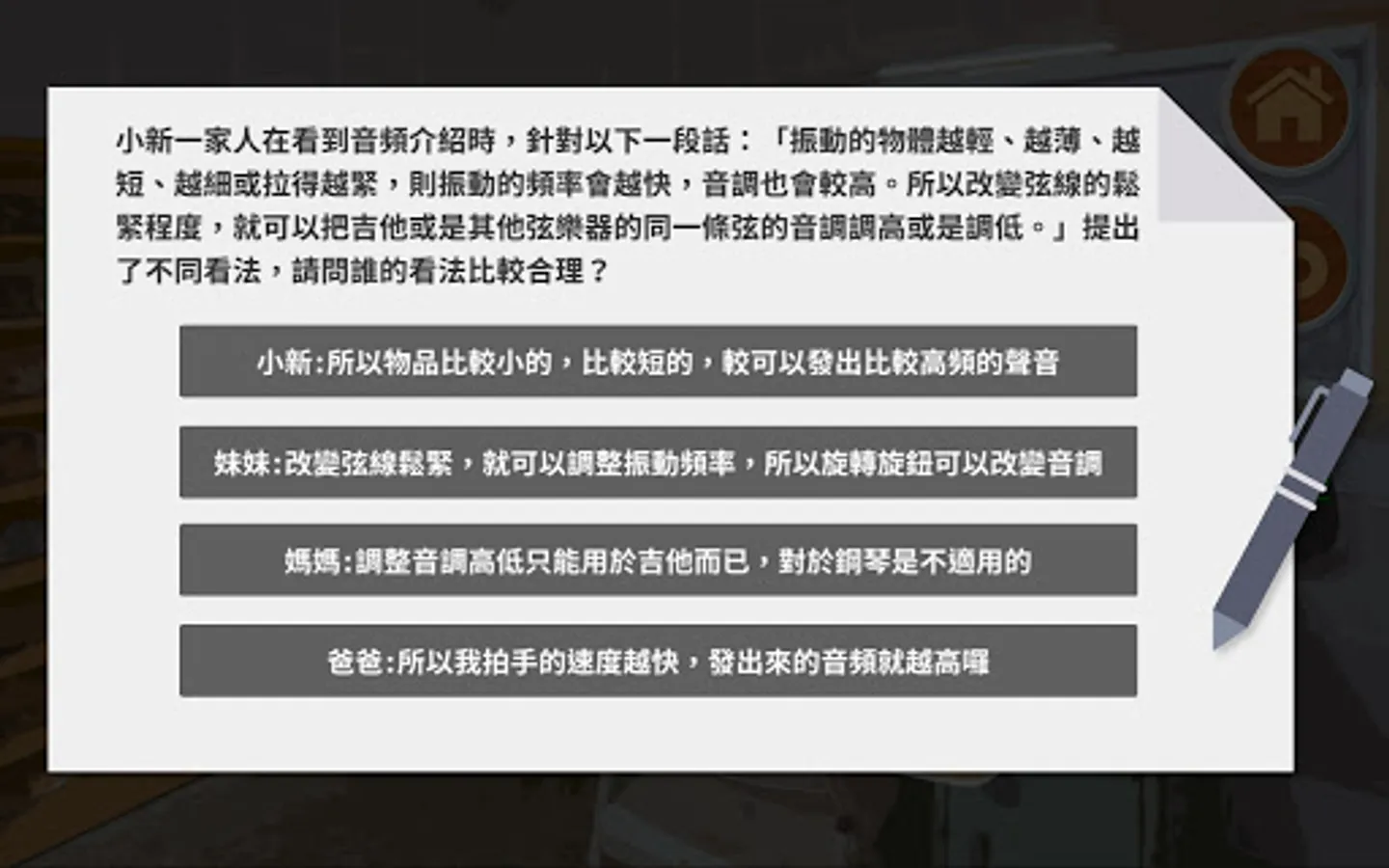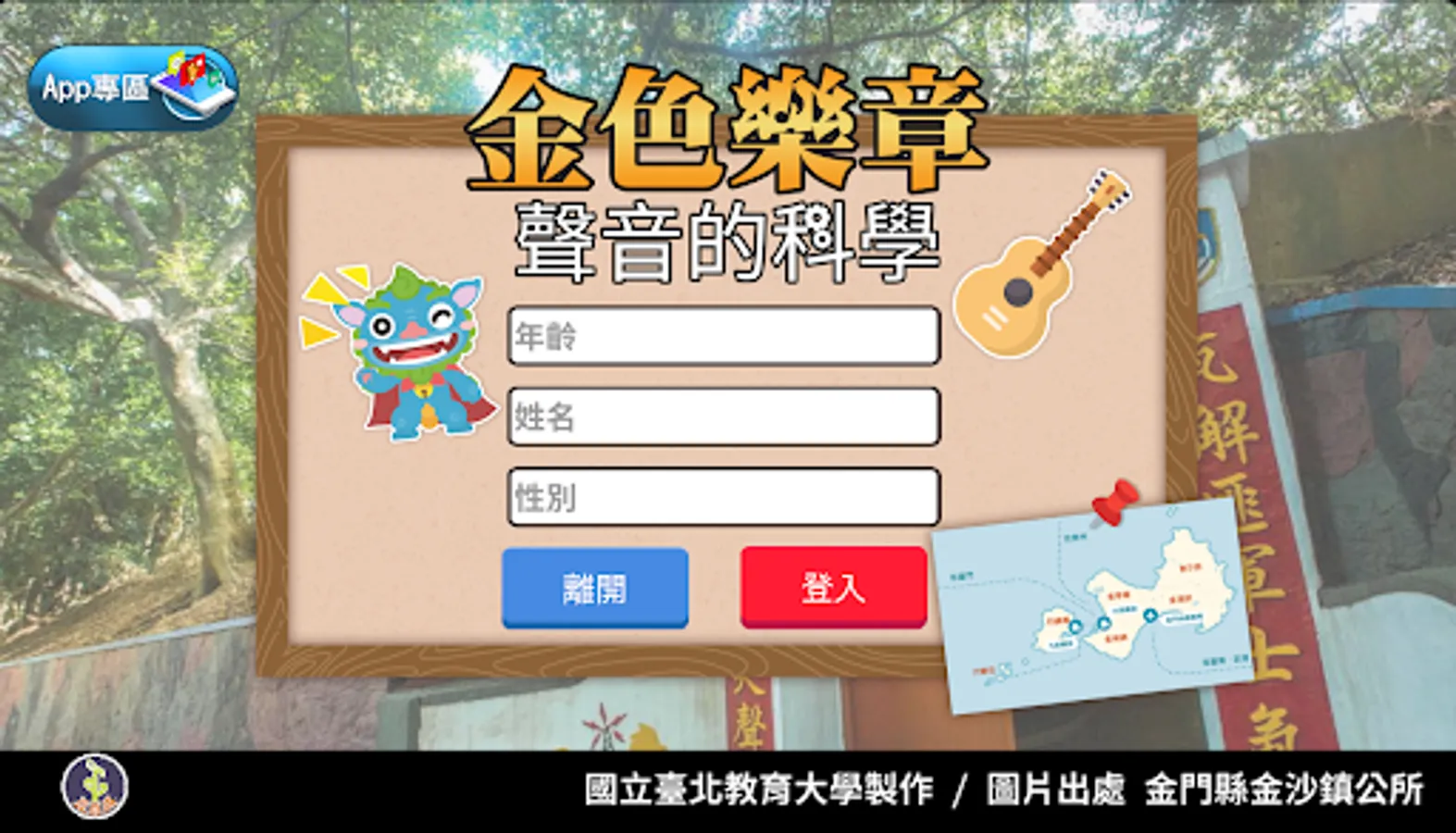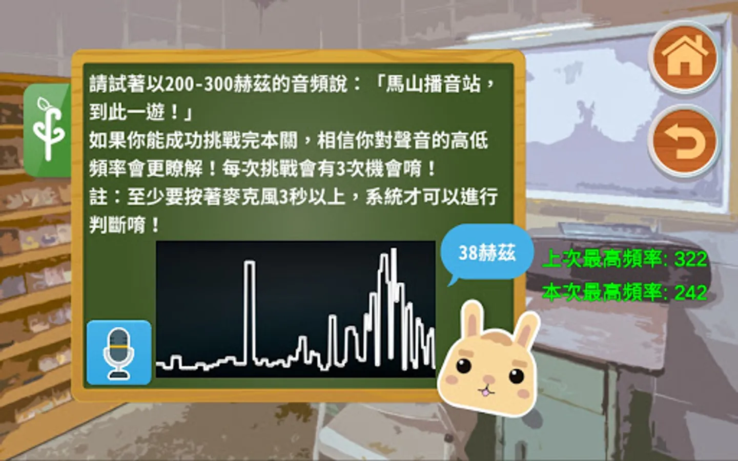 The "Science of Sound" game combines the battlefield cultural attractions related to Kinmen, the design and sound elements: "loudness" and "frequency" related level challenges, in addition to helping you understand the characteristics of the sound, through the quiz after the level challenge, you can also understand you Ability to think critically!