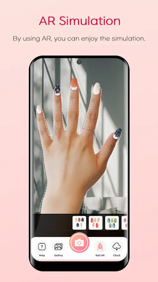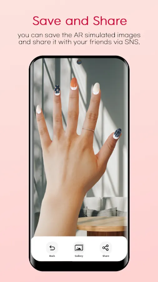 Once you simulate nail arts images on your fingers, you can save the AR simulated images and share it with your friends via SNS.