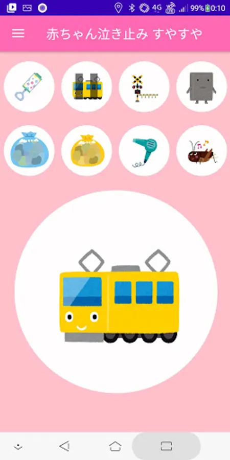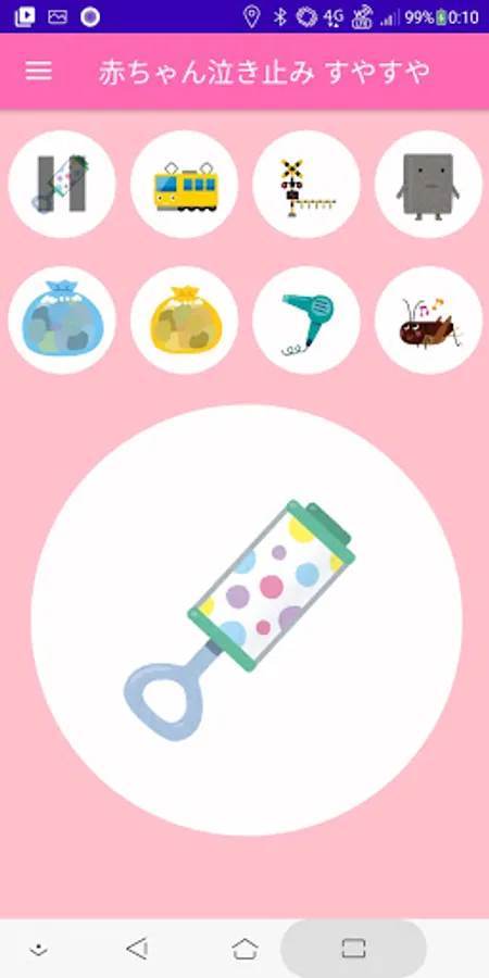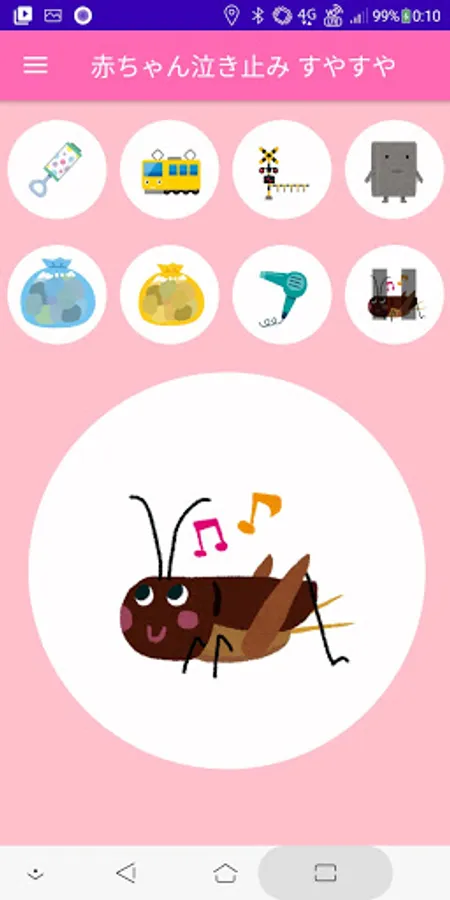 〇 You can play the sound of stopping crying even if the screen is turned off or another application is launched.