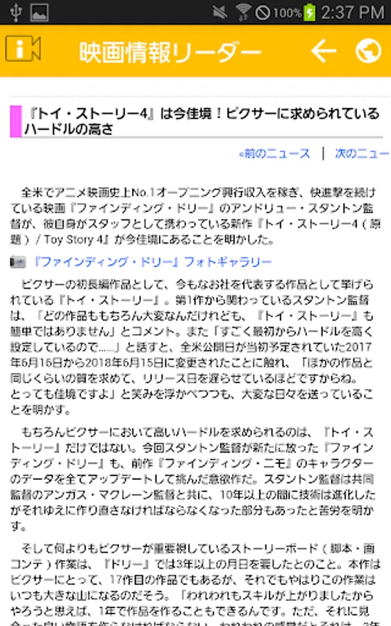 映画の最新情報一覧から気になる映画の記事を見つけたら、ワンタップで記事の詳細情報サイトにジャンプできます。