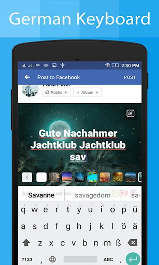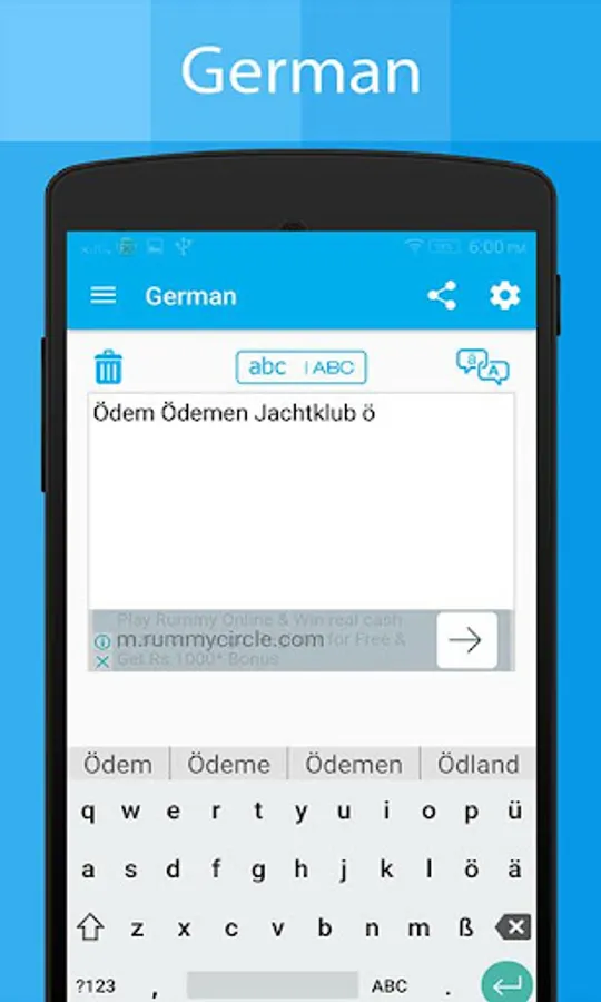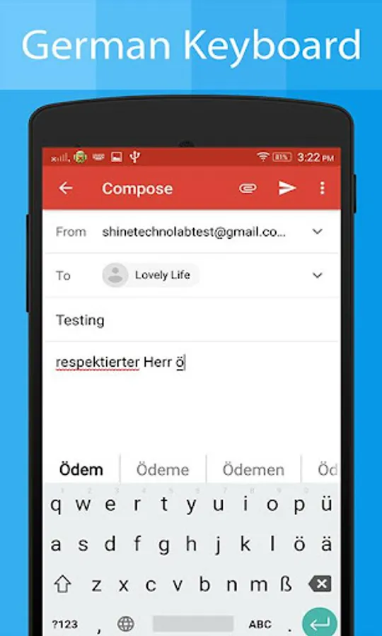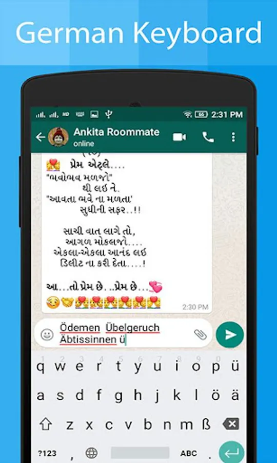 German keyboard app will allow you to write message, story, posts, blogs, Emails in German or German Alphabet language in any social media apps and chat apps.