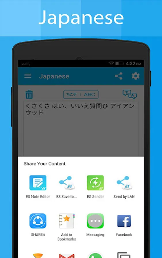 • Open Japanese Keyboard and Translator and types Japanese Words.