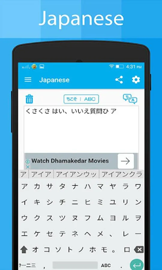3. Japanese keyboard to type to text in Japanese Language.
