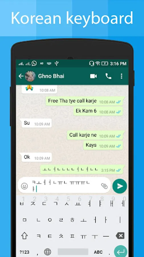 Korean keyboard app will allow you to write message, story, posts, blogs, Emails in Korean or Korean Alphabet language in any social media apps and chat apps.
