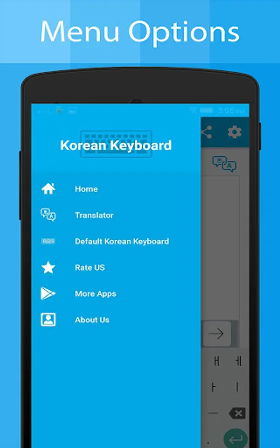 ► Korean Language Keyboard : You can share the translated Korean text to your friends and family using messages, emails, blogs.