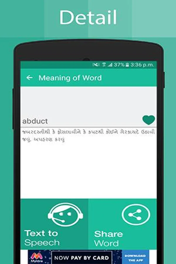 ✓ Want to save a word meaning in the favorites? Tap the heart button and we will add this word automatically in your favorites. You can easily access to it anytime within the favorites choice in the options menu.