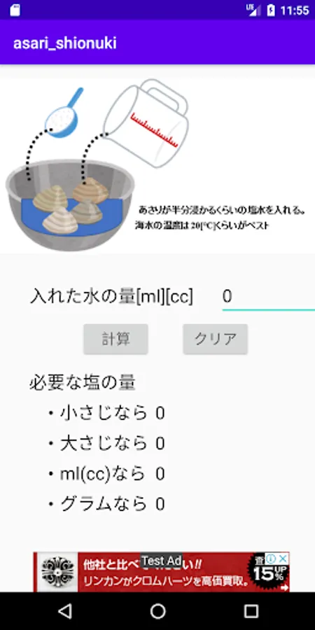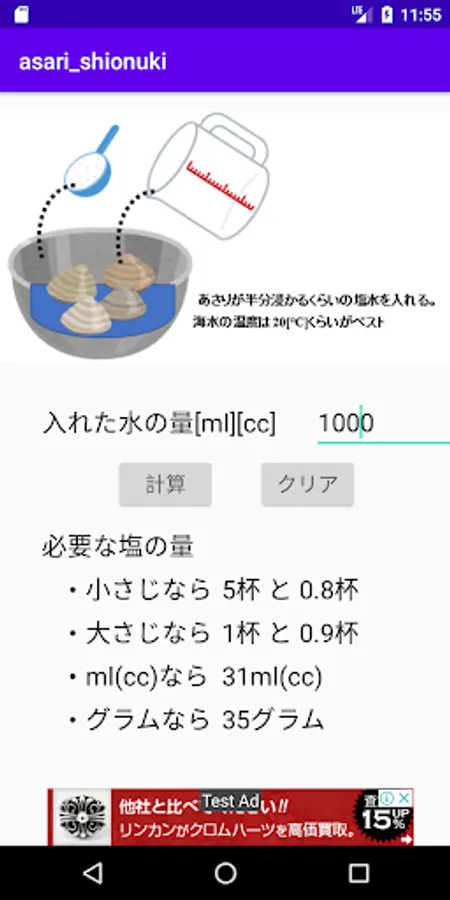 あさりの砂抜き 塩分濃度計算機 Screenshots