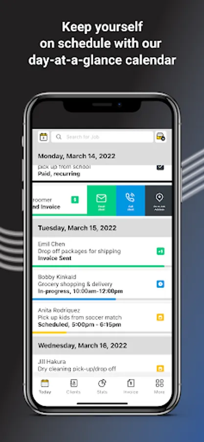 GENERATE INVOICES from job information with a single click to email, text or PDF to clients. Review all paid invoices or just those with outstanding balances due on the Invoice list page. GET PAID!