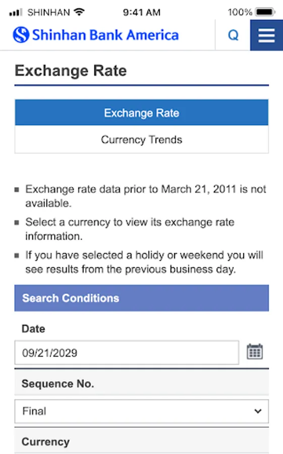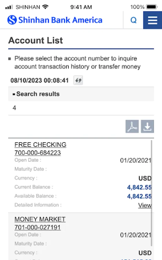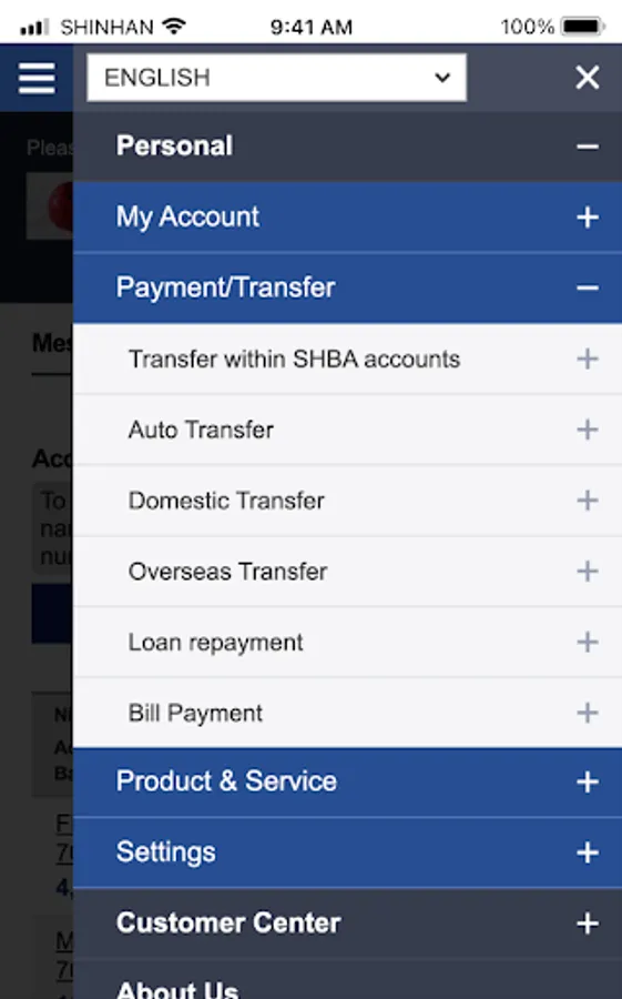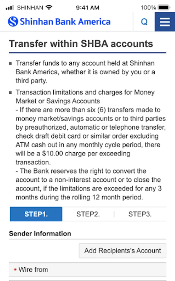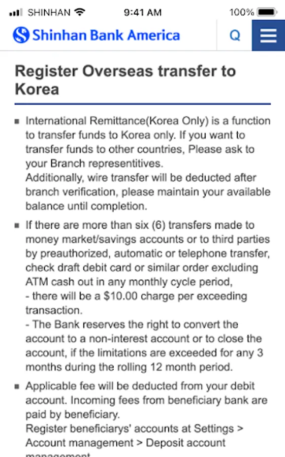 In order to use this app, you must enroll in our Internet Banking Service using your computer first. Once enrolled, you will be able to view your deposit or loan account balances and transactions histories, or transfer funds between your accounts held at Shinhan Bank America.