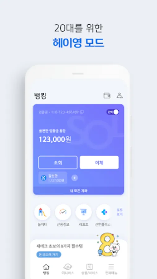 Shinhan Bank does not ask for financial information such as the entire security card number for reasons such as security enhancement or app update. (Please be careful about malicious apps that impersonate Shinhan Sol by using functions such as anti-phishing security settings)