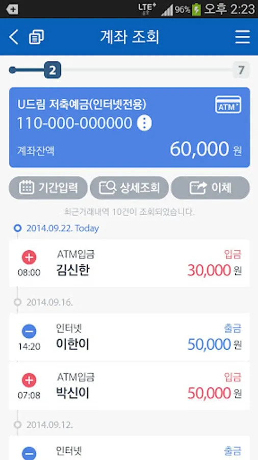 ② Drag the account number area left and right to view transaction details of multiple accounts.