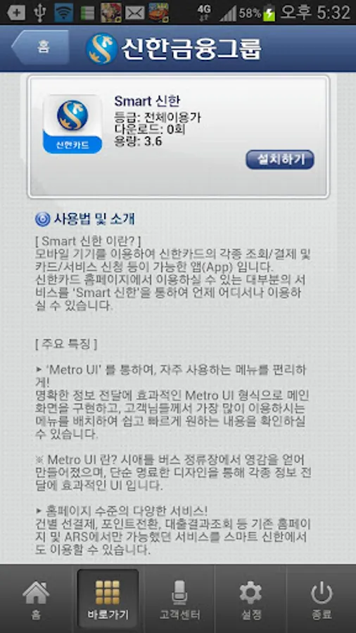 신한금융그룹에서 제공하는 안드로이드용 어플을 고객들에게 종합적으로 소개하는 프로그램입니다.