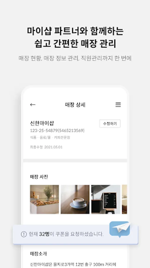 It is Shinhan Card's own small business win-win platform that provides a variety of services, including sales management, employee management, business loans, store promotion/advertisement, and shopping malls for small business owners and individual business owners.