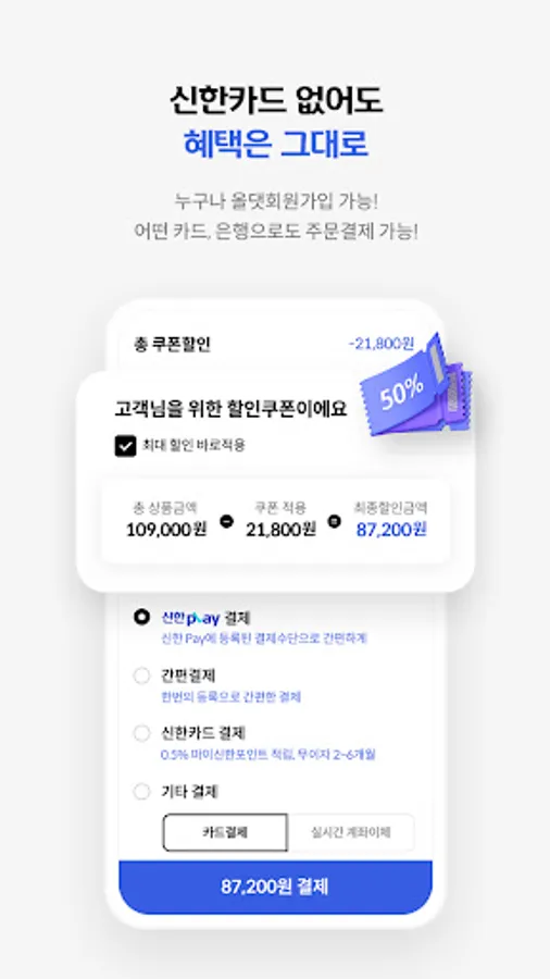- You can pay for orders with other cards and bank accounts other than Shinhan Card.