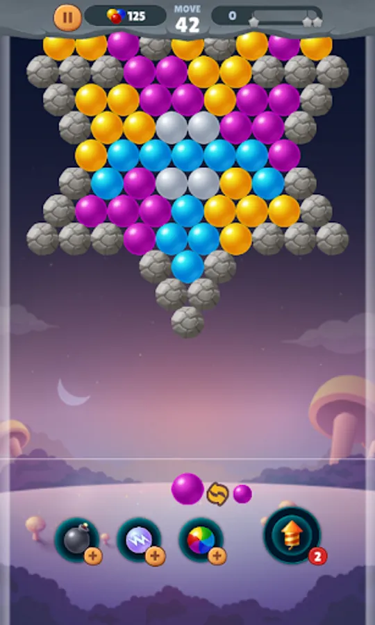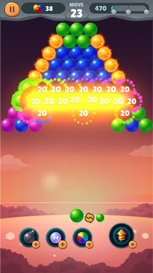 • Use power-ups like bomb ball and rainbow ball to pop bubbles.