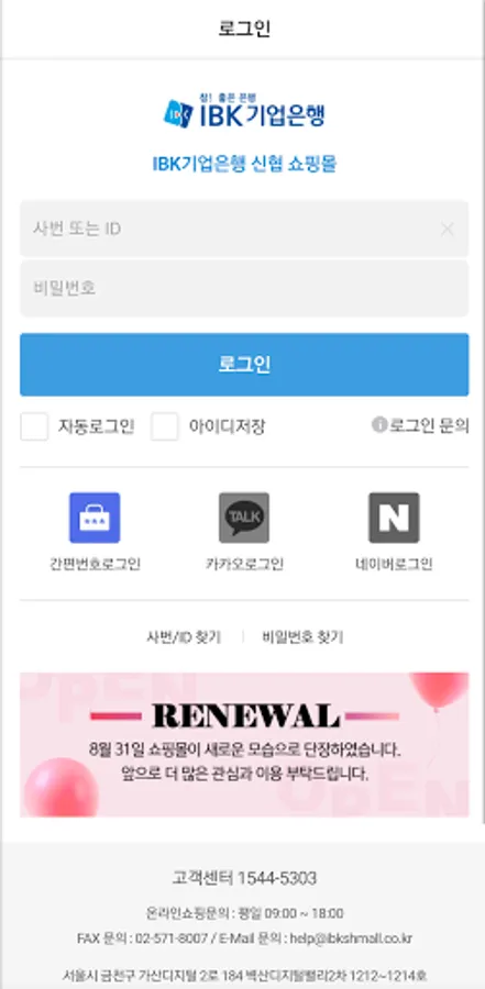 Shinhyup Shopping Mall Customer Center: 1544-5303