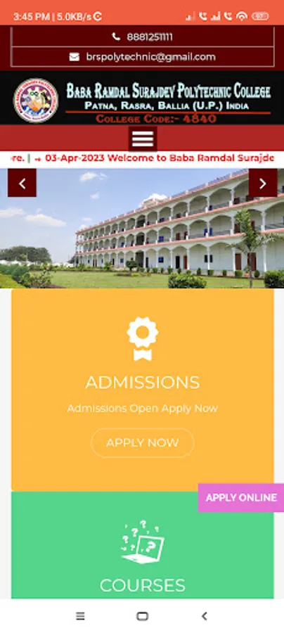 Baba Ramdal Surajdev Polytechnic College an institute recognized by the BOARD OF TECHNICAL EDUCATION (BTE) Uttar Pradesh & AICTE Government of India (New Delhi), was established with a mission of imparting QUALITY Polytechnic Education in various disciplines of Engineering & Technology for the welfare of Technical and Social Community. The Institute is conveniently located in Rajendra Nagar, Pakwainar, Rasra, Ballia on its self-sustained beautiful campus amidst of lush green surroundings.