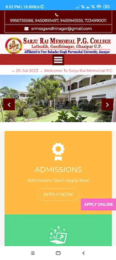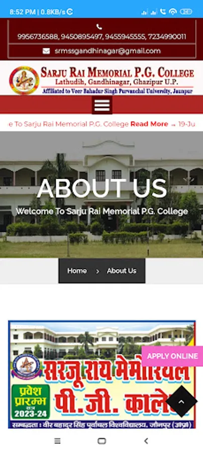 Sarju Rai Memorial P.G. College, Lathudih, Gandhinagar, Ghazipur, Uttar Pradesh affiliated to V.B.S. Purvanchal University, Jaunpur (UP) and Recognized by National Council for Teacher Education for D.El.Ed. programme has been founded with motto to provide higher education to boys and girls of Ghazipur District.