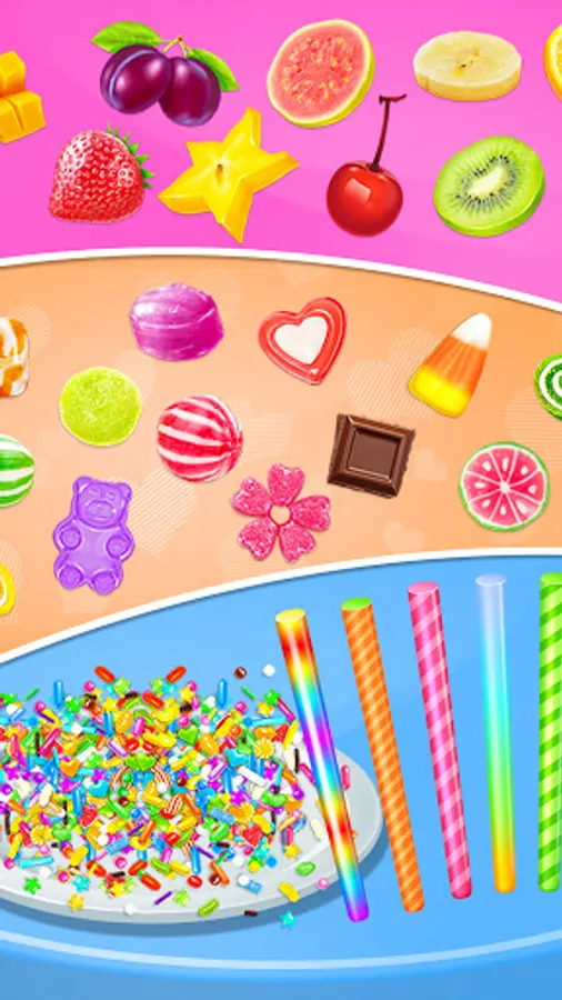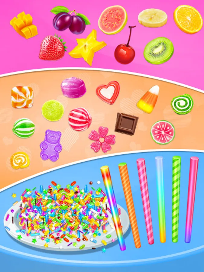 -Design the princess cotton candy with so many decorations. Candy, fruit, sprinkles, and sticks