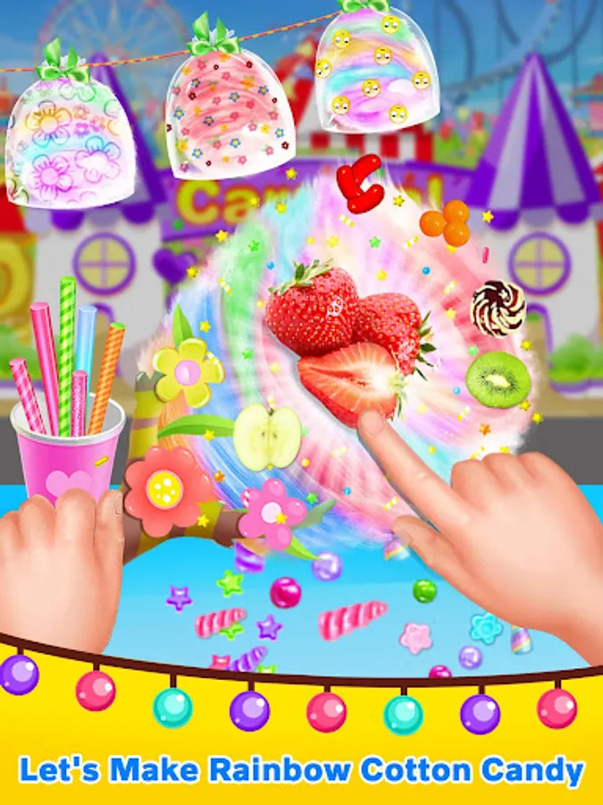 - Hold the rainbow cotton candy. Decorate your rainbow cotton candy with so many sweet decorations. Candy,sprinkle,fruit and sticks.