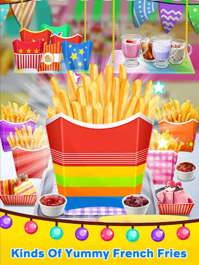 • Drag to pour your fries in the oil and watch as the hot oil sizzles, bubbles and deep fries them to a golden brown.