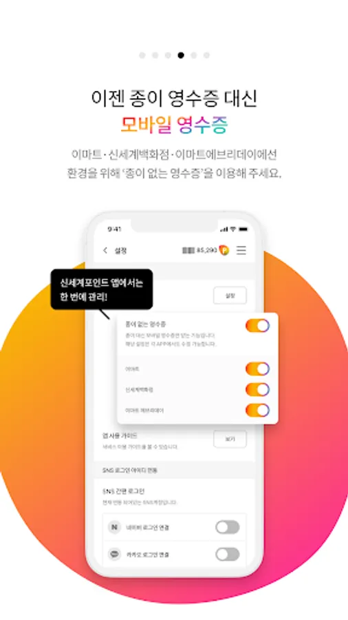 - Easily use benefits and services from Shinsegae merchant membership registration with one integrated ID.