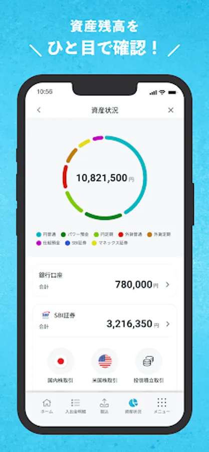 ■Check your balance, deposit/withdrawal details, and savings account balance right away on the home screen. Furthermore, on the asset status screen, you can view not only your bank account balance, but also those with SBI Securities and Monex Securities accounts, the balance of each securities account, so you can check your asset balance at a glance. is.