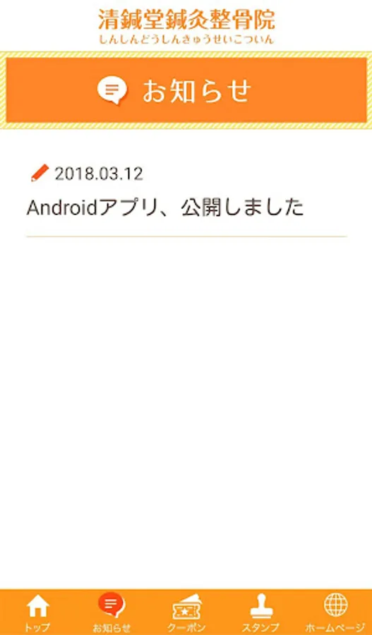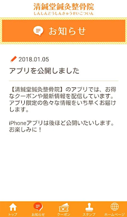 このアプリでは、【清鍼堂鍼灸整骨院(しんしんどうしんきゅうせいこついん)】の最新の情報をいち早くお届けしたり、