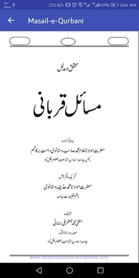 This is the famous book of the masail of Qurbani which contain all the masail of qurbani. the author of the book is Hazrat Maulana Gulam MUHAMMAD Saib. This book reading is necessary for every Muslim before the eid ul adha. This book contains every aspect of the Qurbani which are necessary that now every Muslim...