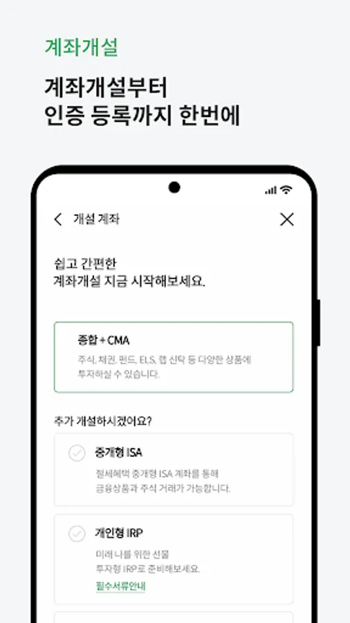 From general trading, brokerage-type ISA, individual IRP, to pension savings by opening a desired account at once and issuing a certificate