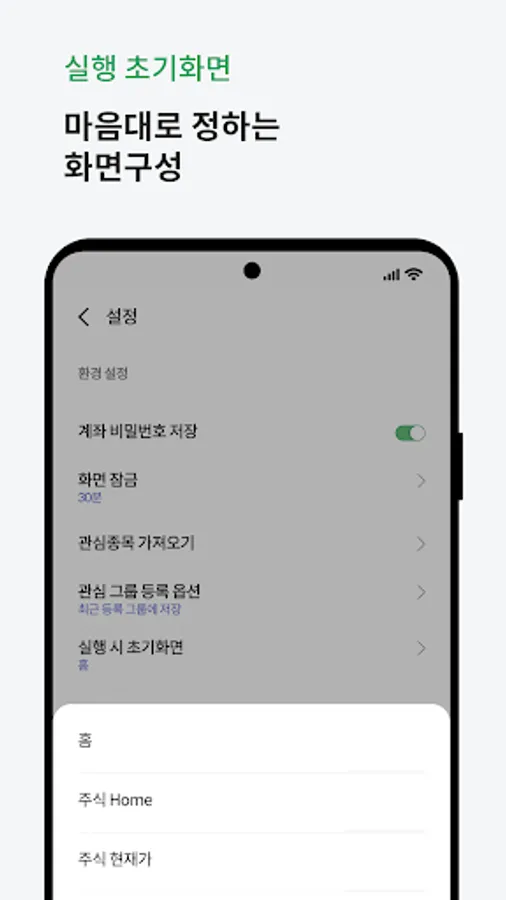 · Set the initial screen as you like in My Account Banner, Stock Home, Current Price, Interests, and Menu