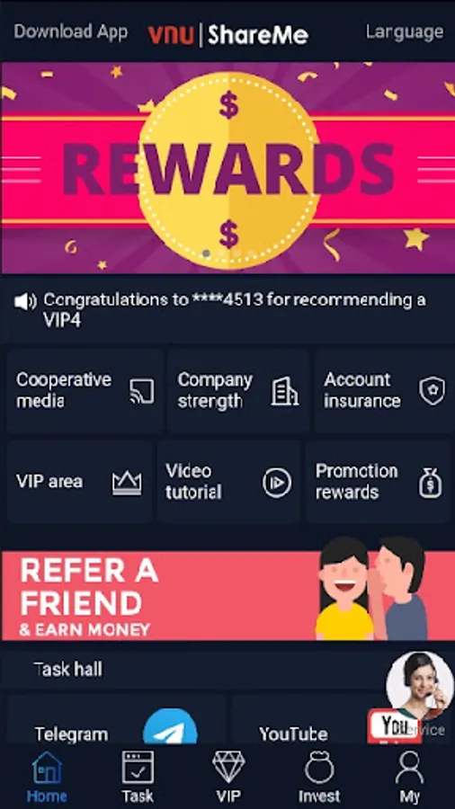 ShareMe APP is a sub-station of VNU Group. There are approximately 38,000 employees in the VNU headquarters. ShareMe APP is the promotion platform of VNU. ShareMe APP has an investment team, 8,000 employees, and more than 10,000 partner companies from Facebook and YouTube. They mainly recruit formal members in the Indian market and help influencers on social platforms such as Facebook merchants and YuoTube to promote ShareMe APP on short videos to attract more attention