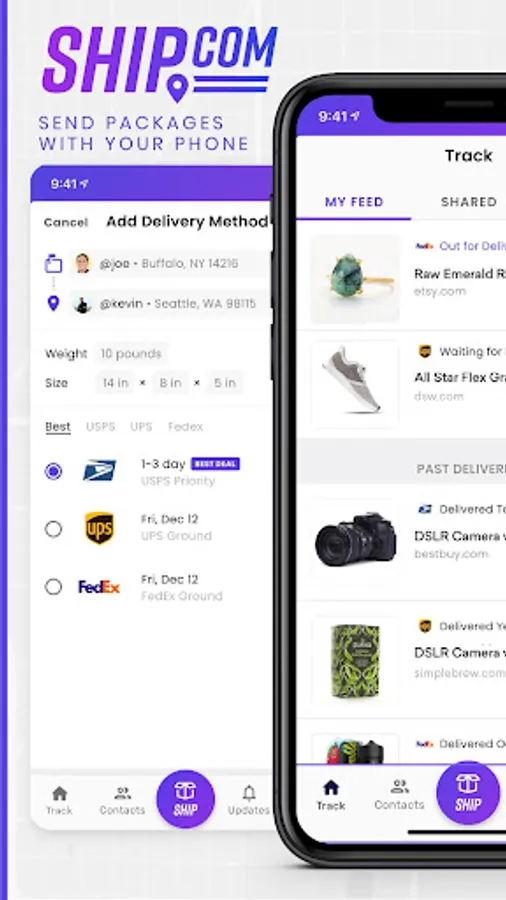 Ship.com is a virtual post office that fits in the palm of your hand. Now it's easier than ever before to ship and track your packages and share delivery information with family and friends.