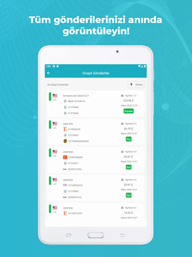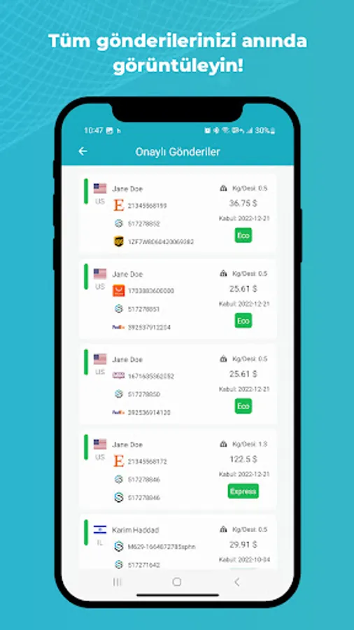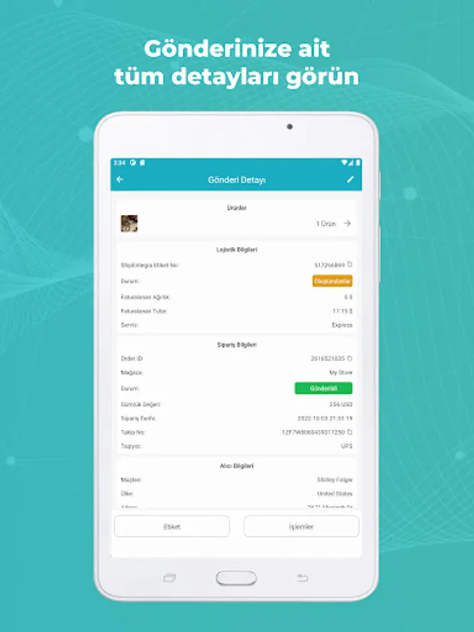 You can collect all your stores in the world's leading marketplaces such as Etsy, Amazon, Walmart, Shopify, eBay on your phone and view the details for each order. Thus, you can minimize the time you will spend for the delivery preparation of your shipments and eliminate the possibility of incomplete and incorrect information entry.