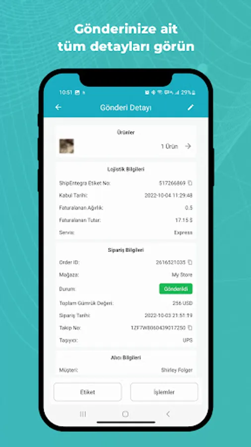 With ShipEntegra Mobile, you can manage the orders of your stores and send cargo. If you want to see the details of your orders, you can use the "Barcode Scan" feature and access all the details in a second.