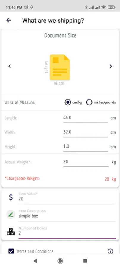 - Fill in the parcel details and confirm