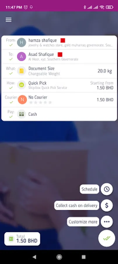 Shipi Box is a unique and brand new way to Deliver packages from Bahrain to destinations around the World. Shipi Box gives customers a safe and convenient way to pick up and deliver parcels, documents, checks and packages of any size across the Bahrain and Worldwide. Shipi Box app makes it easier to manage your delivery orders with easy to use online dashboard. Shipi Box's ultimate goal is to provide tailored yet affordable services compared to competition.