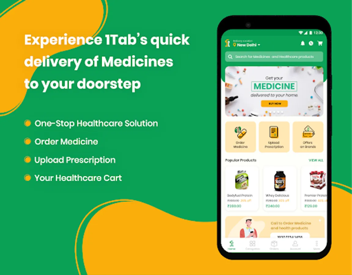No hassle of revisiting medical stores for medications or health staples! With our pharma app, get home delivery of medicines in cities including Delhi, Ghaziabad, Noida, Gurgaon, Greater Noida, Mumbai, Kolkata, Faridabad & many more. Download the 1TAB app to order now!