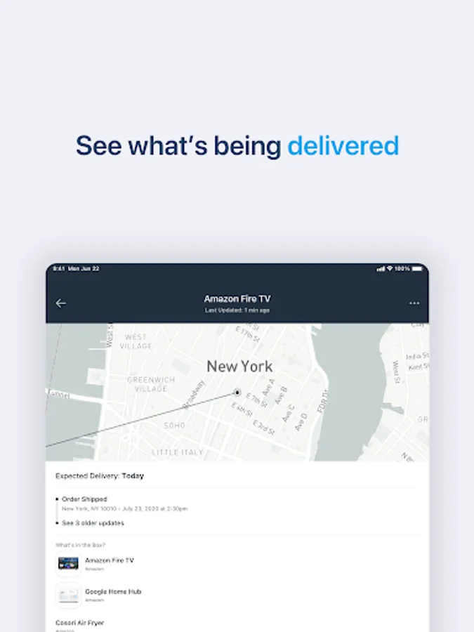 • See full details about your order including what's in the box and where it currently is in the shipping process.