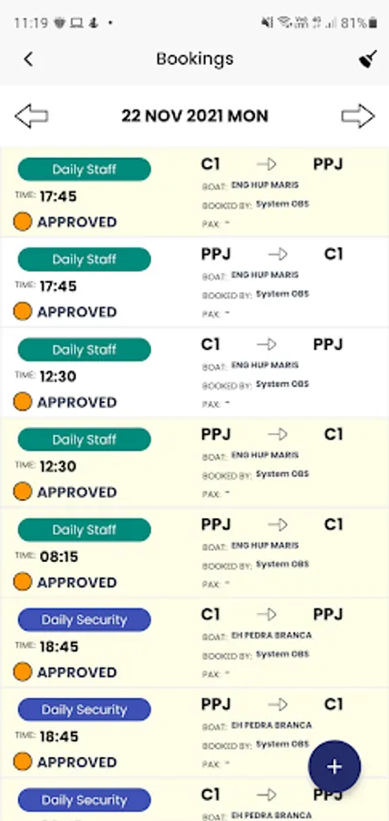 2. Live updates and notifications of the ferry bookings