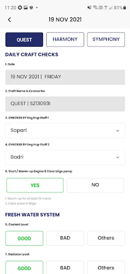 6. Daily checklist management of the ferries before commencing operations.