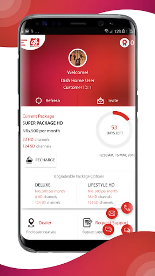 This app facilitates Dish Home subscribers to interact with various operation of dishhome like check the balance,reauthorize the channels,check the disconnection date,Add Pay Per View etc,change the package.