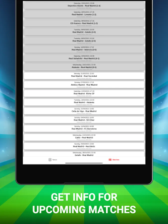 ★ Full covering of all La Liga (La Liga Santander), UEFA Champions League, Copa del Rey, Supercopa de España and other tournaments.