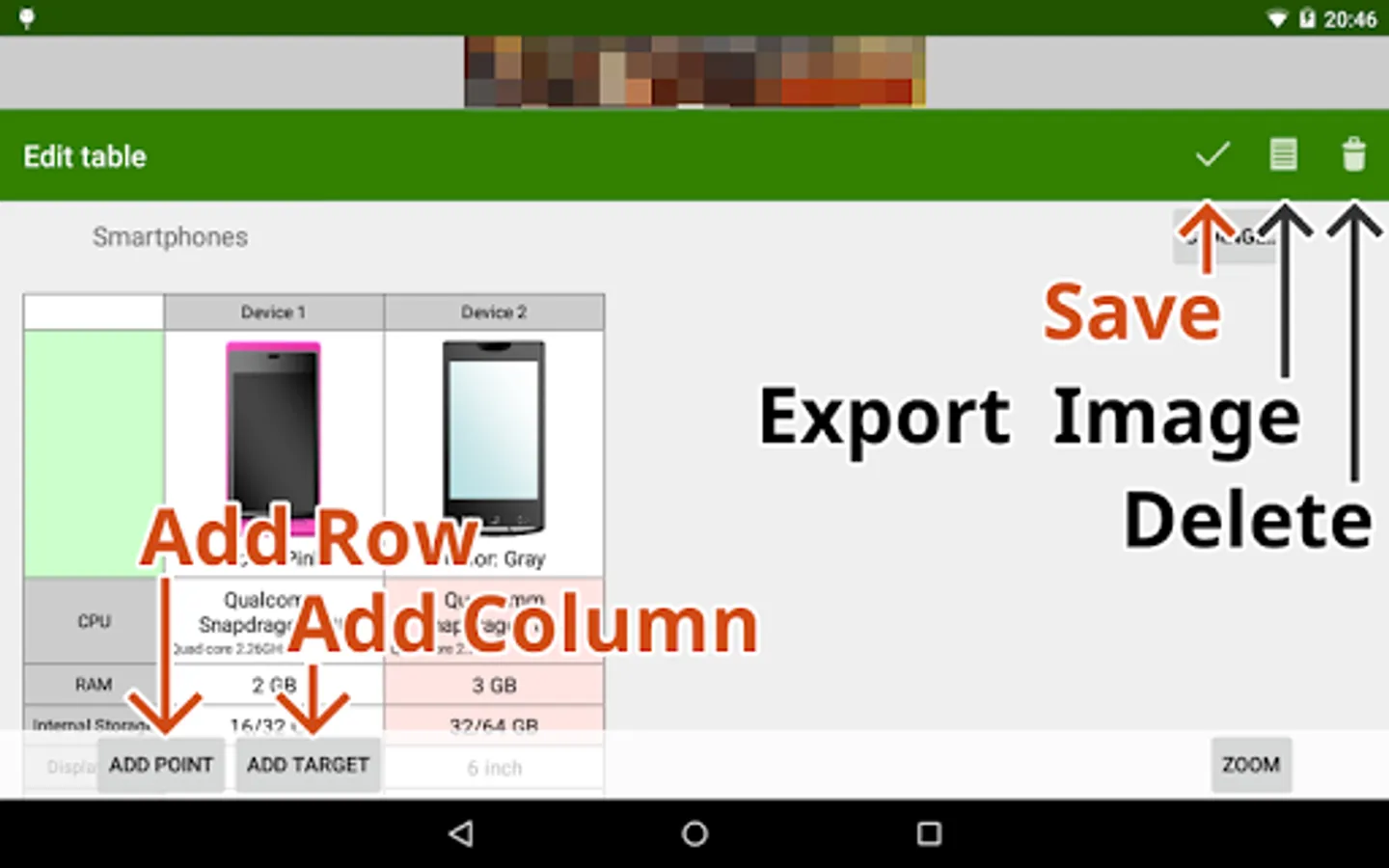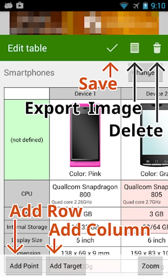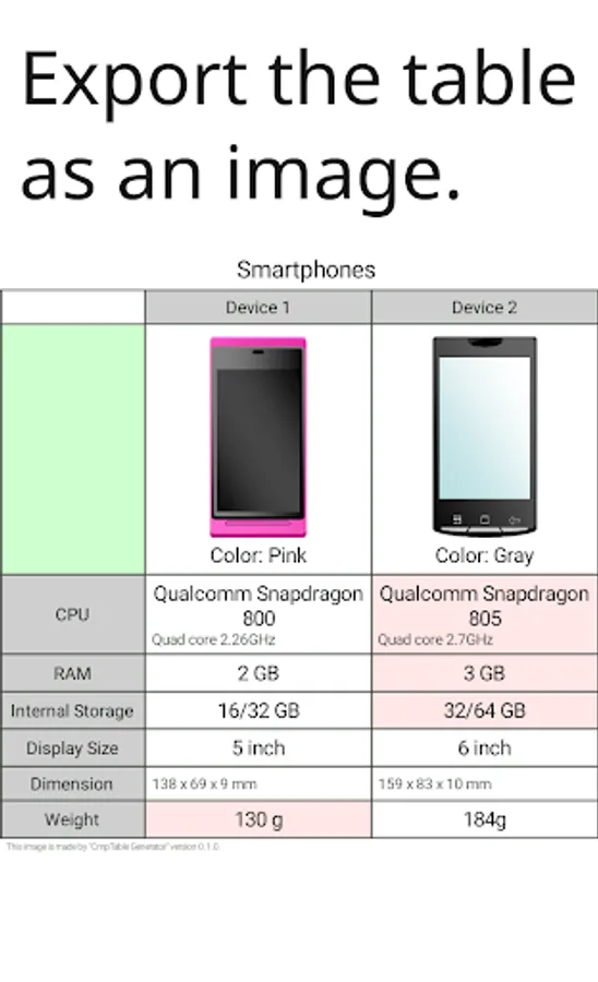 This app generates a comparison table for products or services etc. You can easily edit a table, and export as an image.
