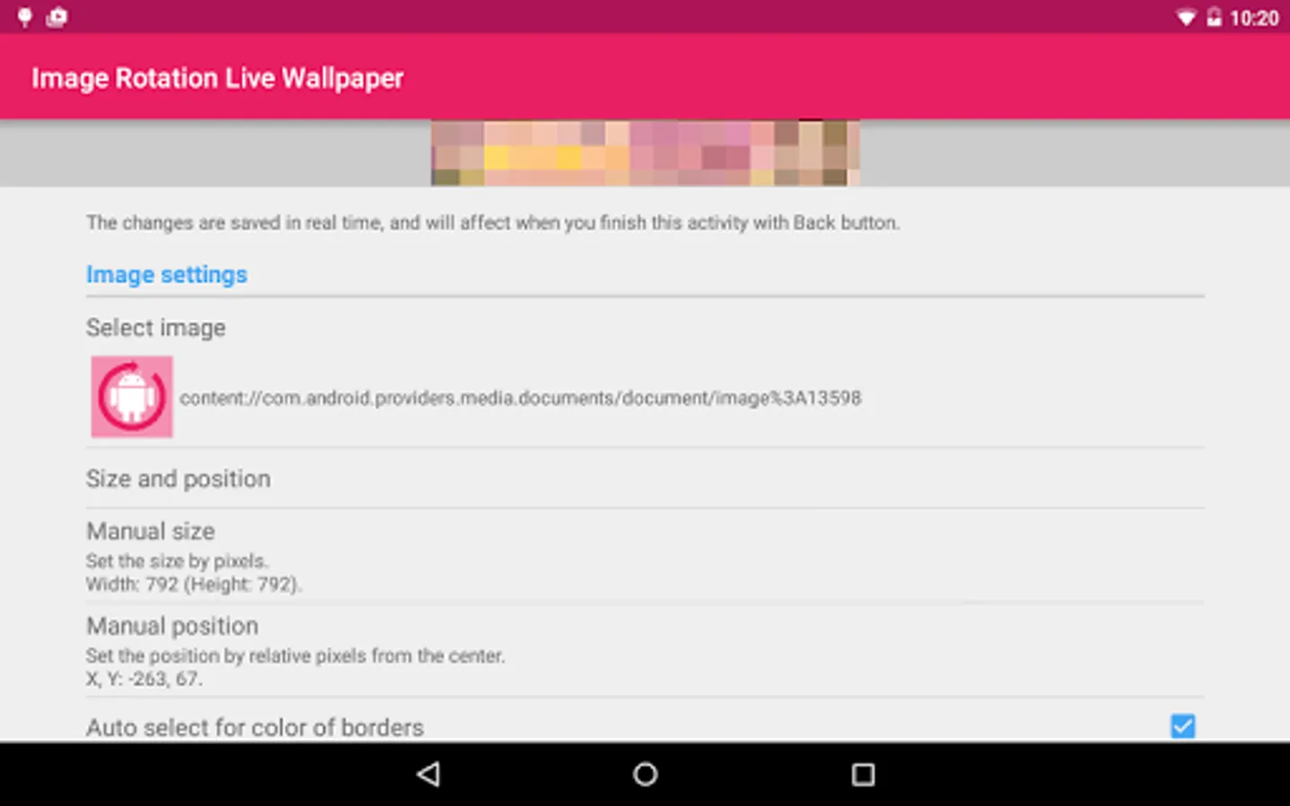 When you open the app from a launcher icon, you can configure the settings. In addition, you can set the app as a live wallpaper from the app in following steps.